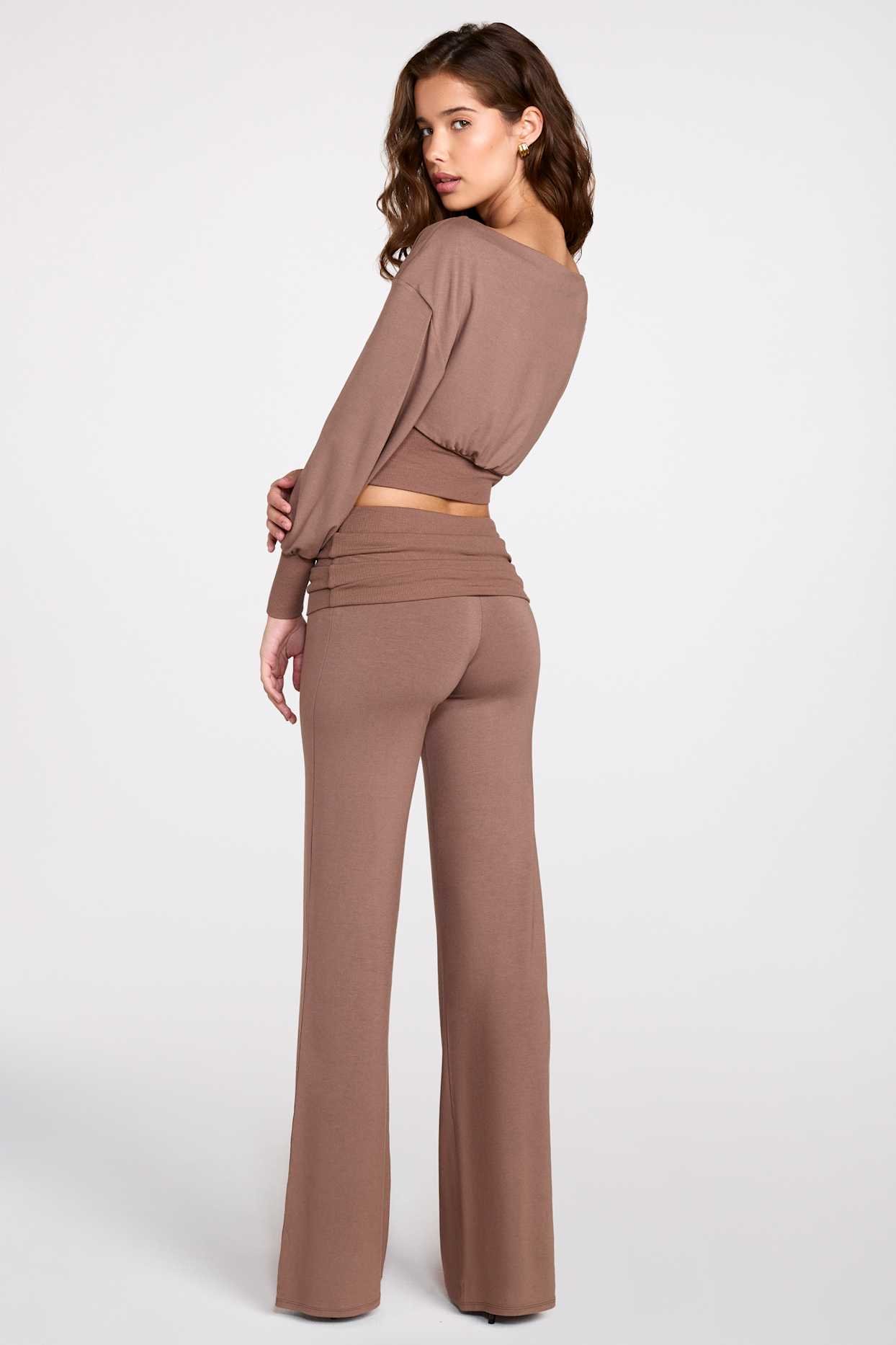A refined take on modern tailoring. Cut to a sleek, straight-leg silhouette, the Thea trousers are crafted from an ultra-soft ribbed fabric with TENCEL™ Modal fibres, with a lightweight finish, creating an effortlessly luxe feel. The low-rise design is anchored by a ribbed, slouchy waistband that elevates the relaxed profile, while the mocha hue enhances the understated sophistication.